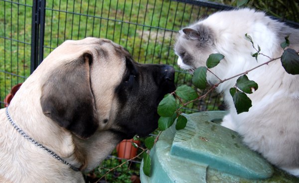 Il s’entend généralement bien avec ses congénères et il nous a été donné de voir chez un éleveur, plusieurs mâles et plusieurs femelles aller et venir ensemble dans la maison ; ceci serait exclu avec le Bullmastiff.
